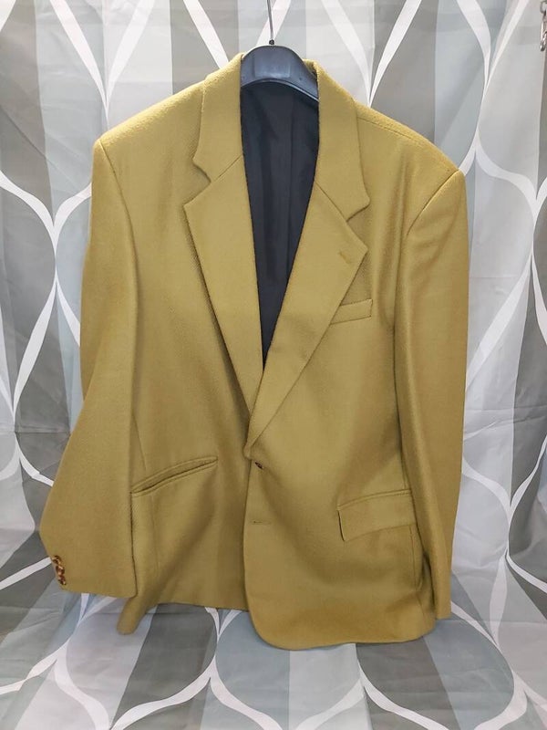 Veste homme raffinée, texture laine/coton en excellent état de couleur jaune moutarde de la marque Fox Studio de taille XL.